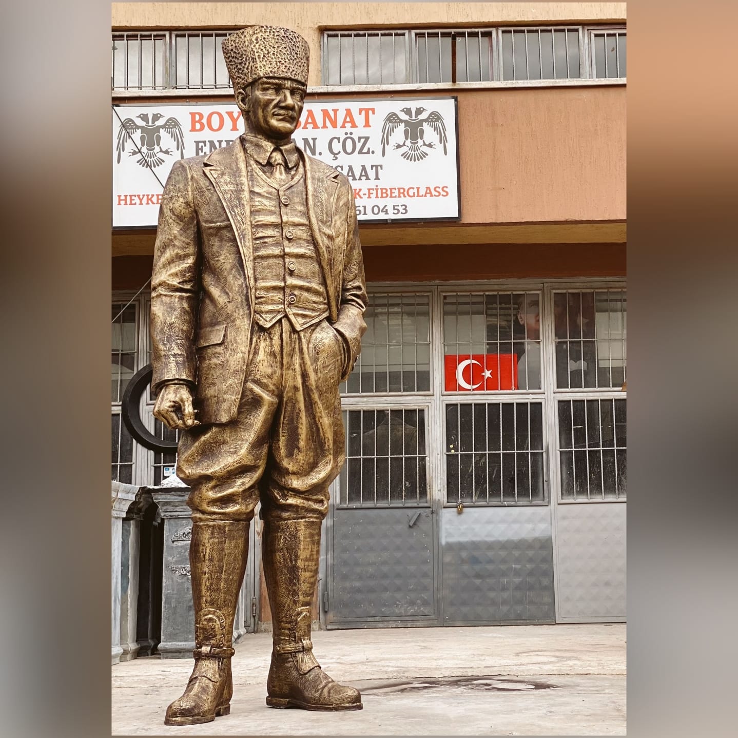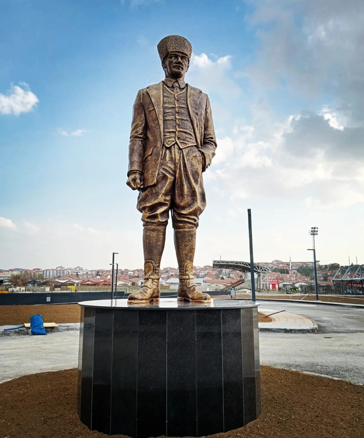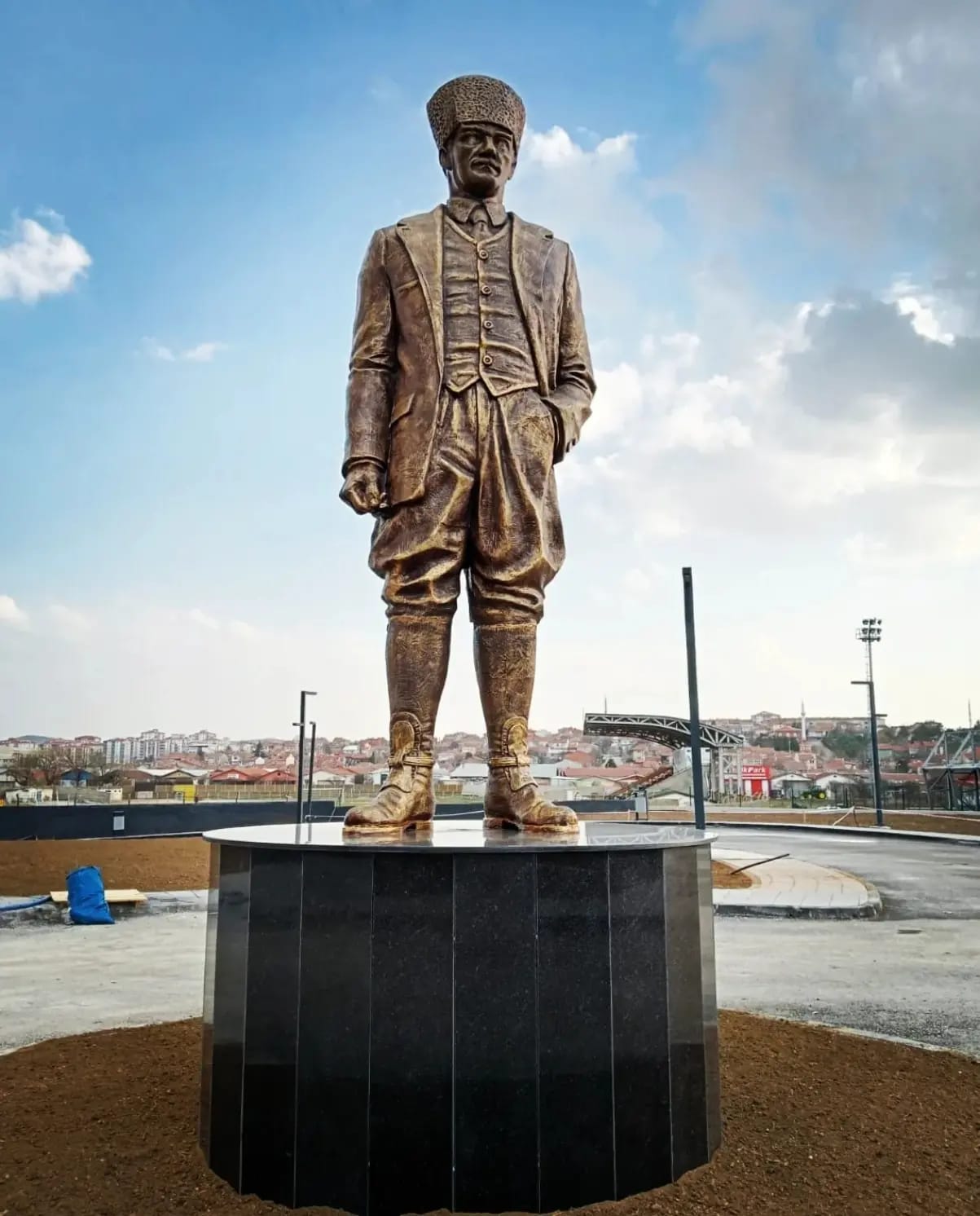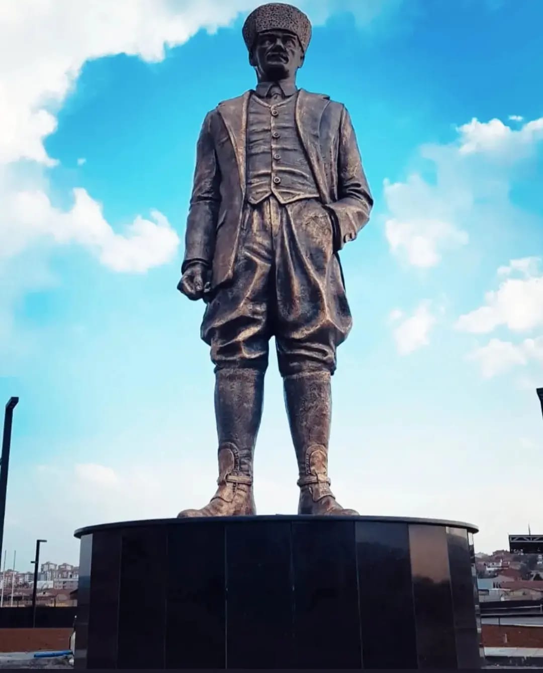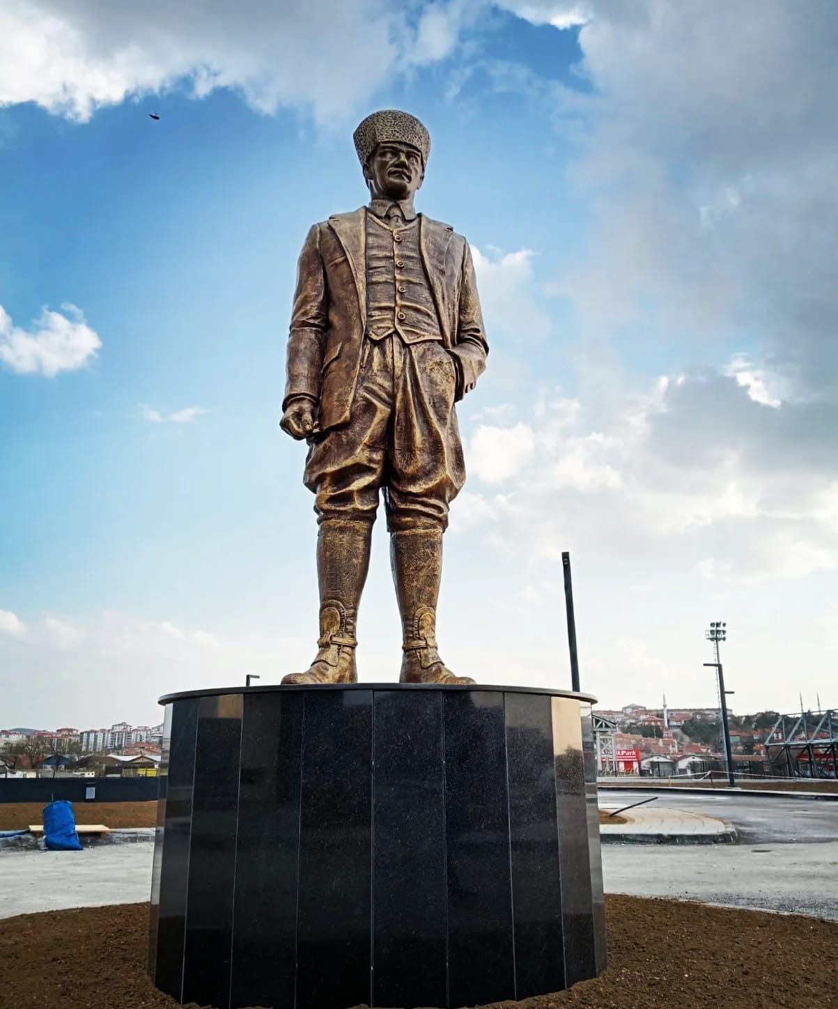 Ebatları 300cm olan kalpaklı Atatürk heykeli. Atölyemizde imal edilip çoğu belediyelere teslim edilmiştir.