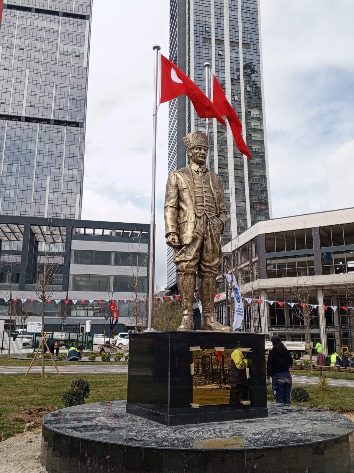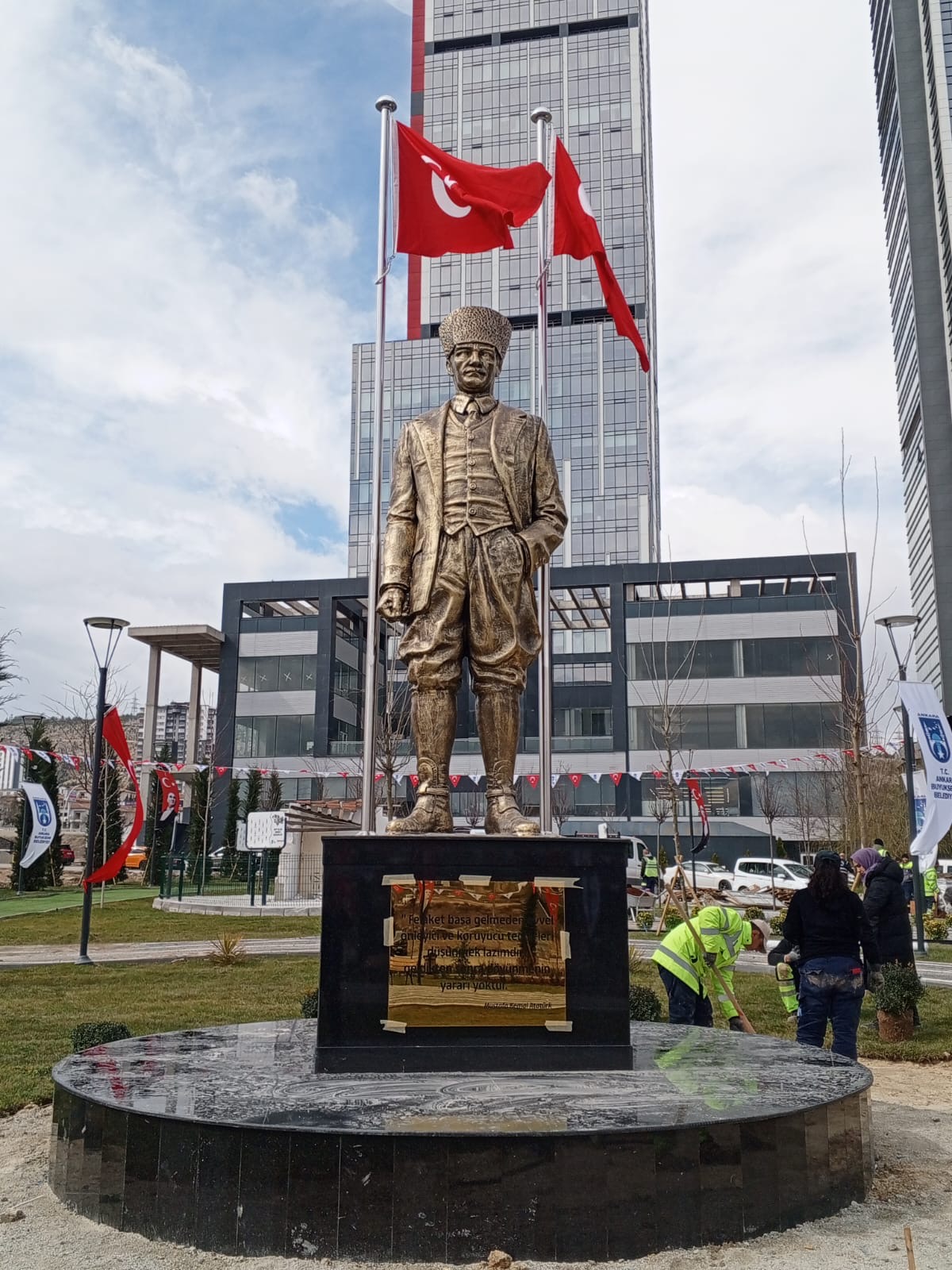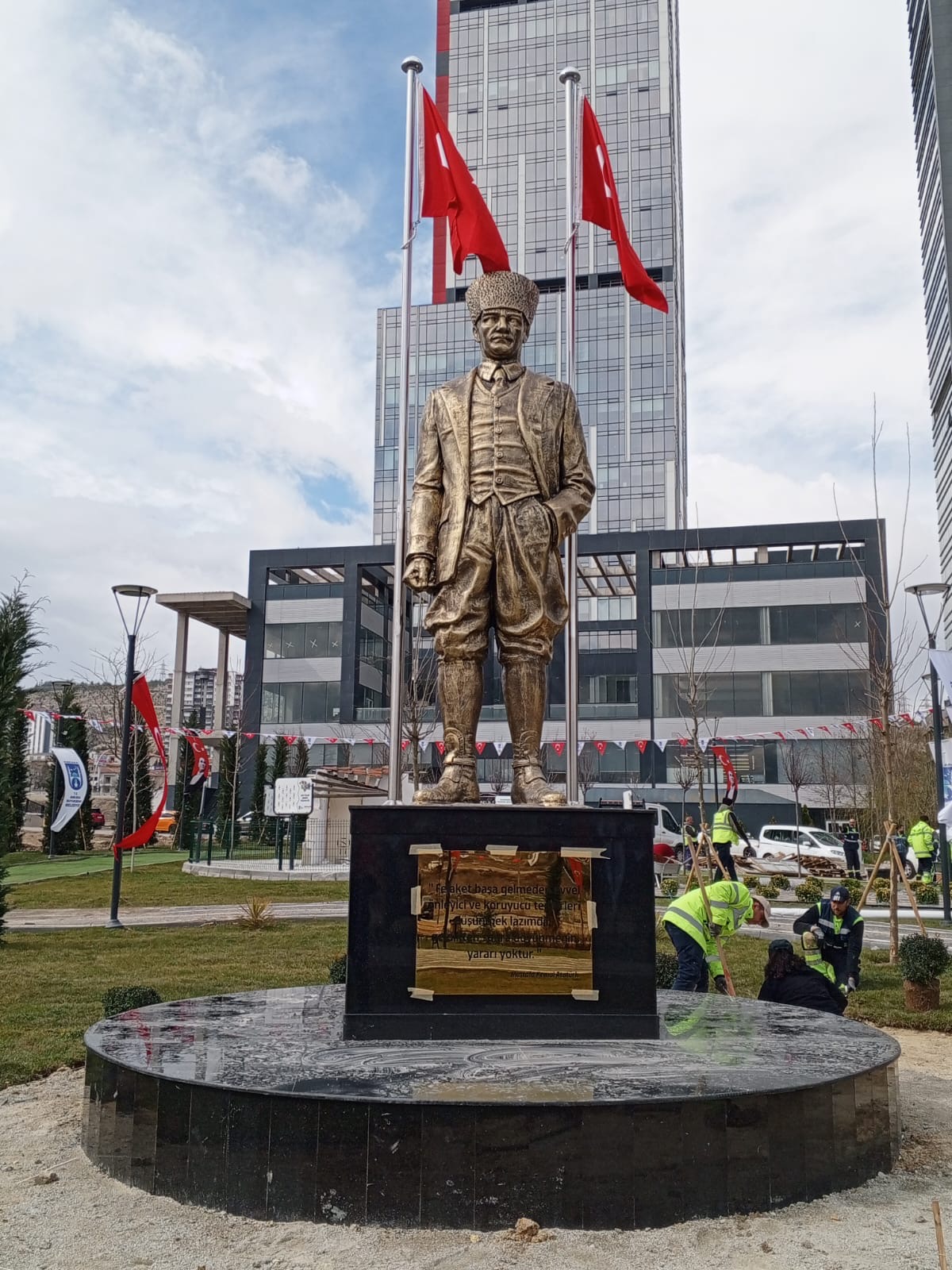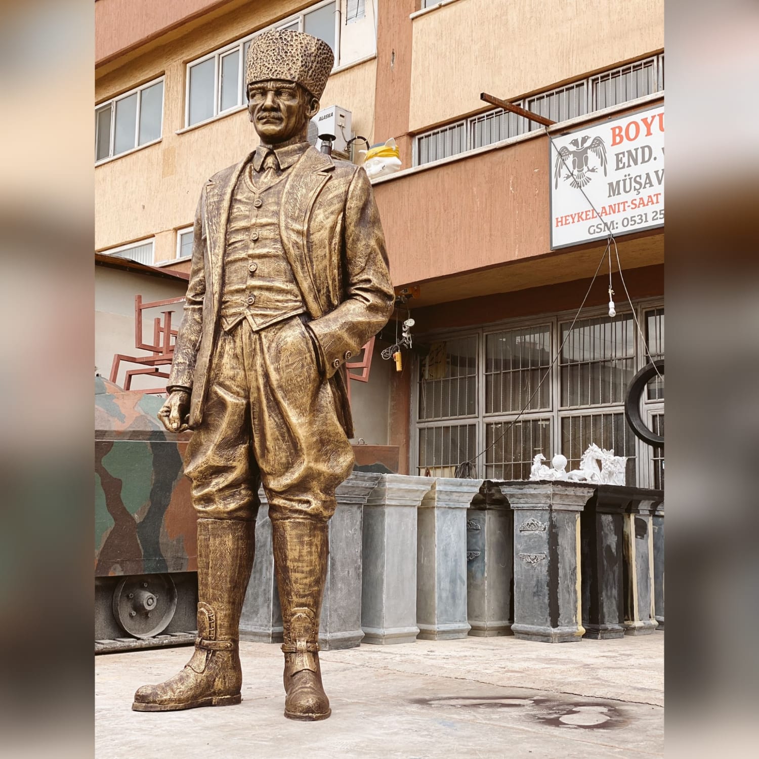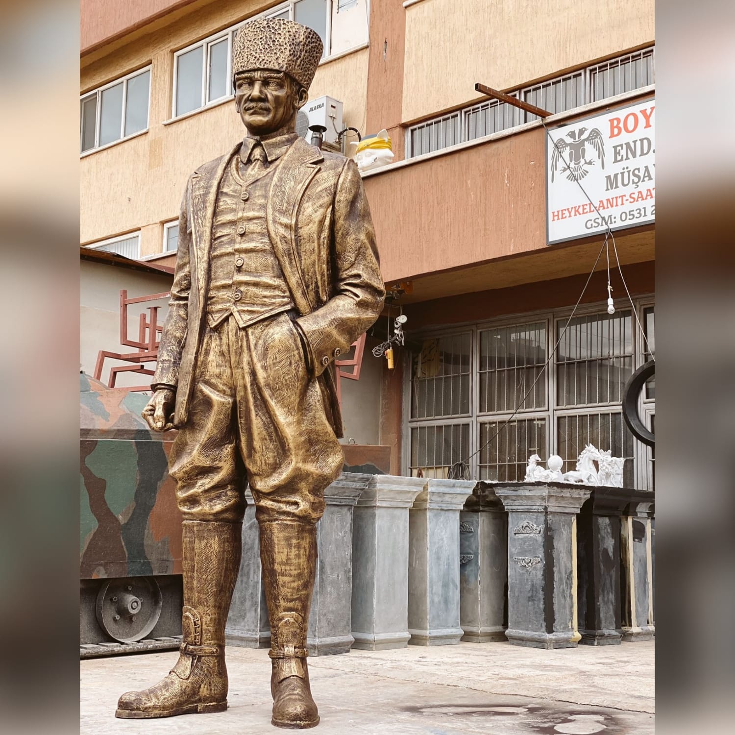 Ebatları 300cm olan kalpaklı Atatürk heykeli. Atölyemizde imal edilip çoğu belediyelere teslim edilmiştir.
