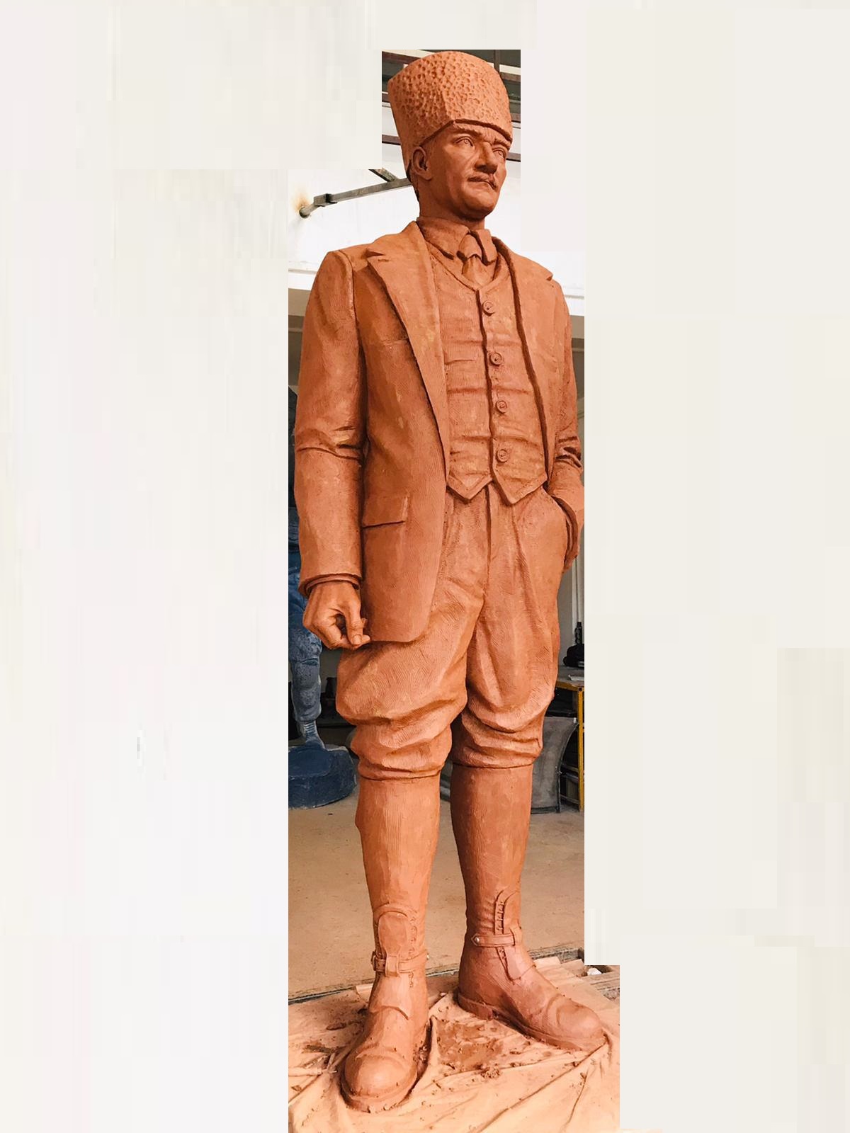 Ebatları 300cm olan kalpaklı Atatürk heykeli. Atölyemizde imal edilip çoğu belediyelere teslim edilmiştir.